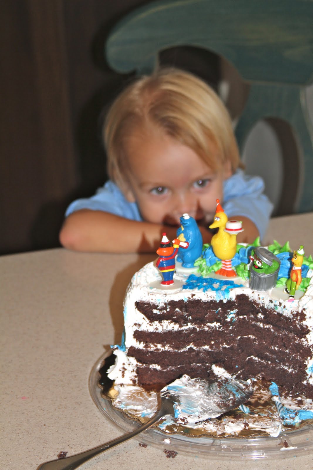 See those Sesame Street figures on top of that bakery purchased cake? {I could not get my act together to bake one myself}