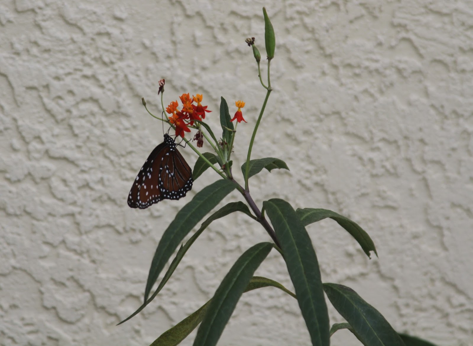 I frequently spot Queen butterflies in my garden too; they're also fans of the milkweed. At first glance they could be mistaken for the monarch.